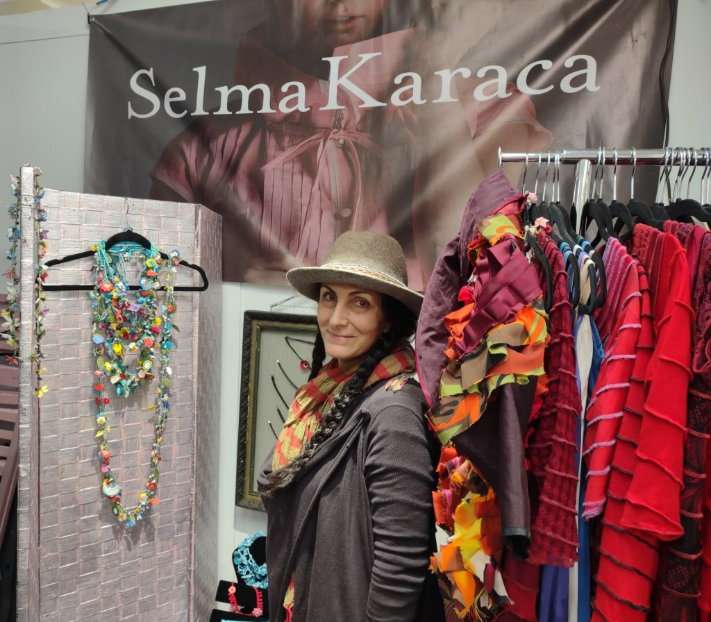 We are the lucky recipients of her need to create: unique paneled dresses, needlepoint, crochet. Selma is a sculptor and painter from Turkey who moved to New York in 1999 to start her own clothing line.